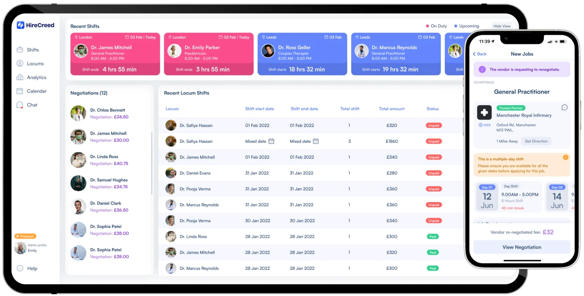 HireCreed, an online locum platform based in the UK, designed to bridge the gap between healthcare professionals and businesses. This platform addresses the challenges faced by locums within the current market, offering a more flexible and efficient alternative to traditional systems.