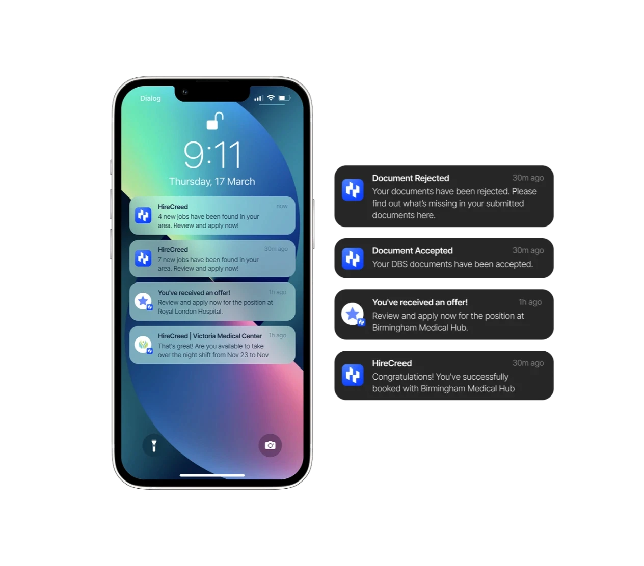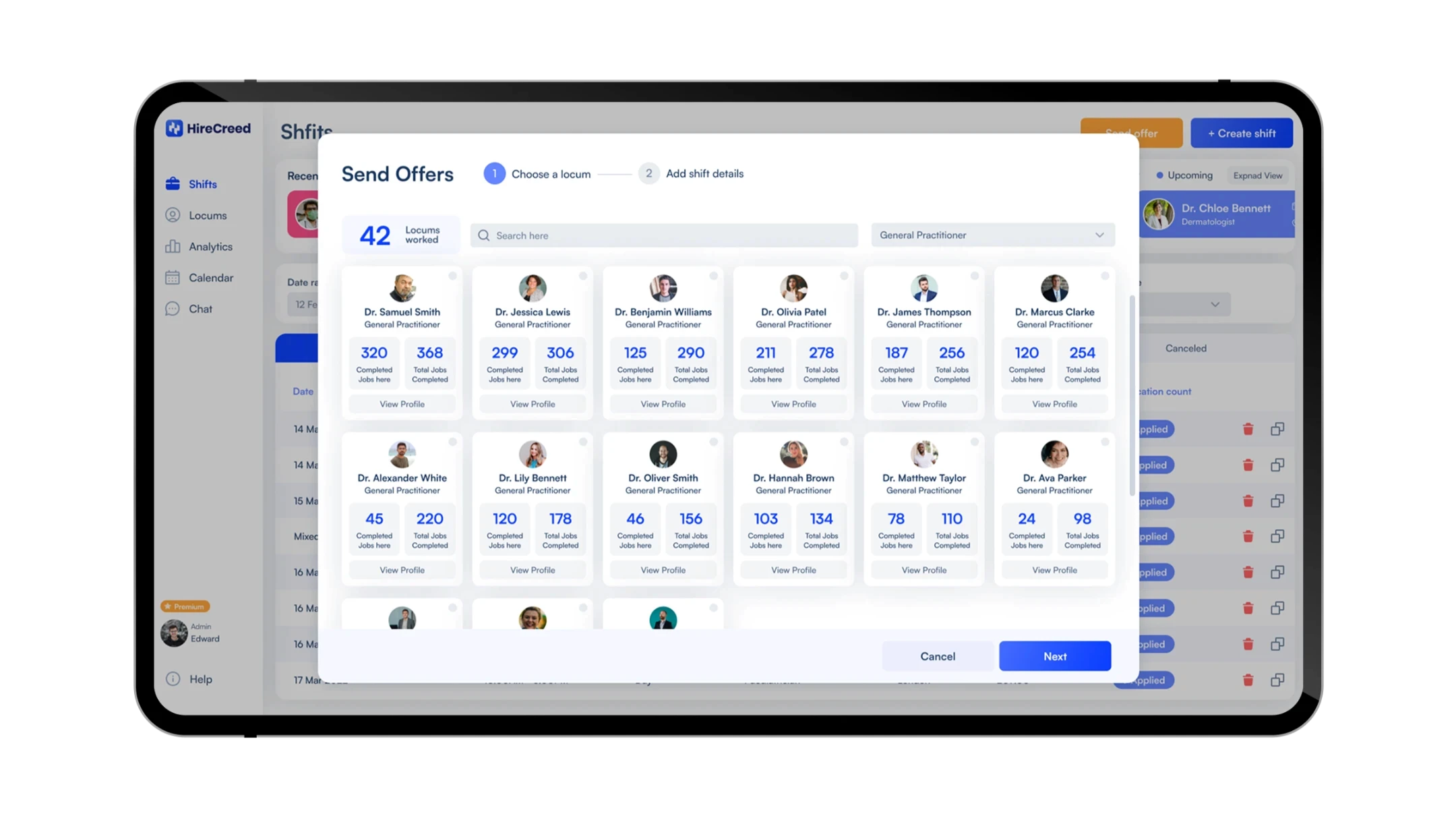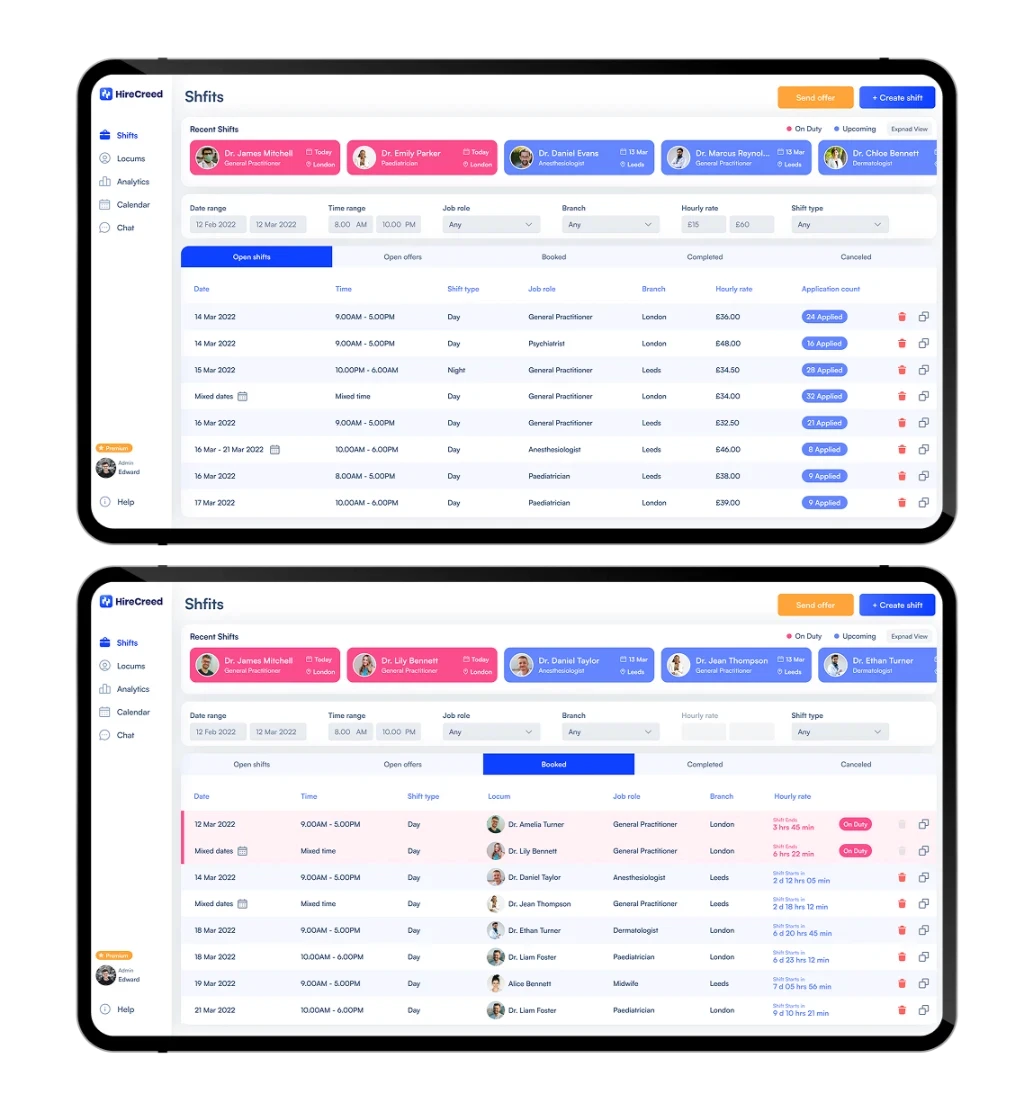 Here’s how a personalized offer is created through the business app and how locums can view and accept it on their mobile app.