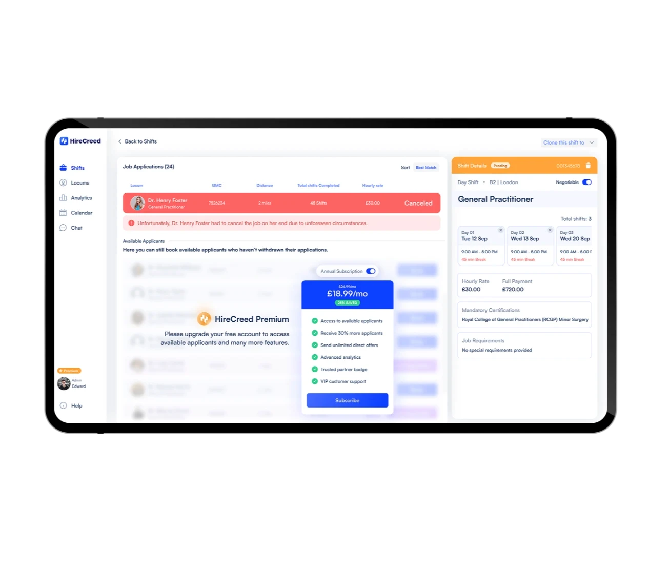 Speed up locum verification with the Hirecreed admin panel.