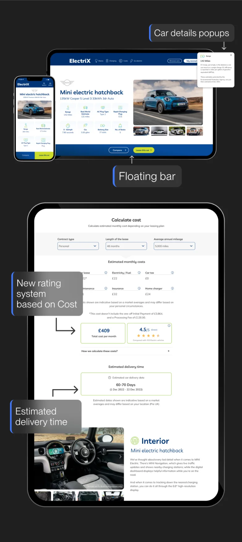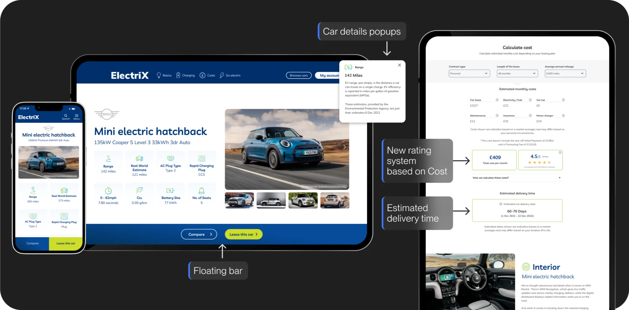 We also added extra options, like exterior and interior features, so customers could personalize their electric car to suit their preferences.
