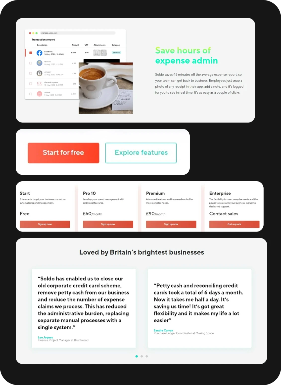 A key goal is to make the content layout clearer and easier to navigate. By simplifying information and focusing on a user-friendly approach, the aim is to help users quickly understand and engage with Soldo’s offerings, creating a smoother and more enjoyable experience